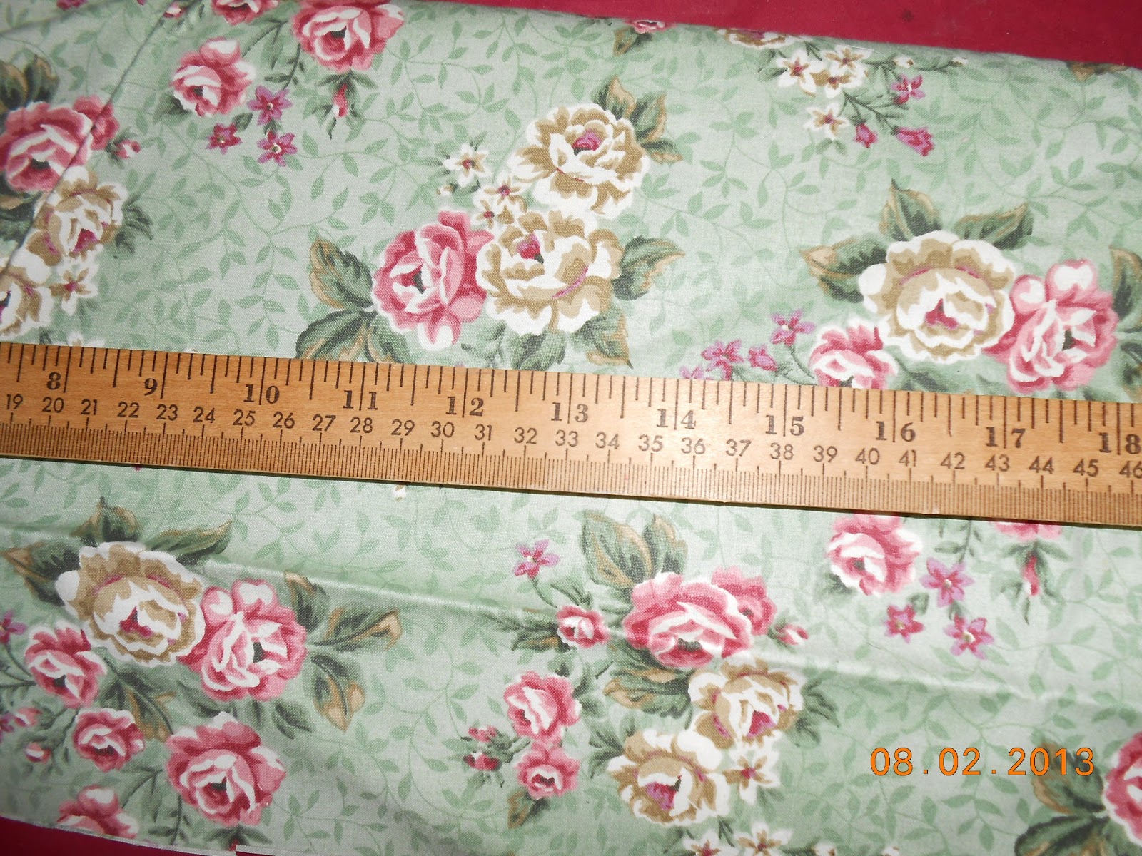 #10 is a green floral cotton with large roses, 44″ wide and 11 yds long. $2/yd = $22